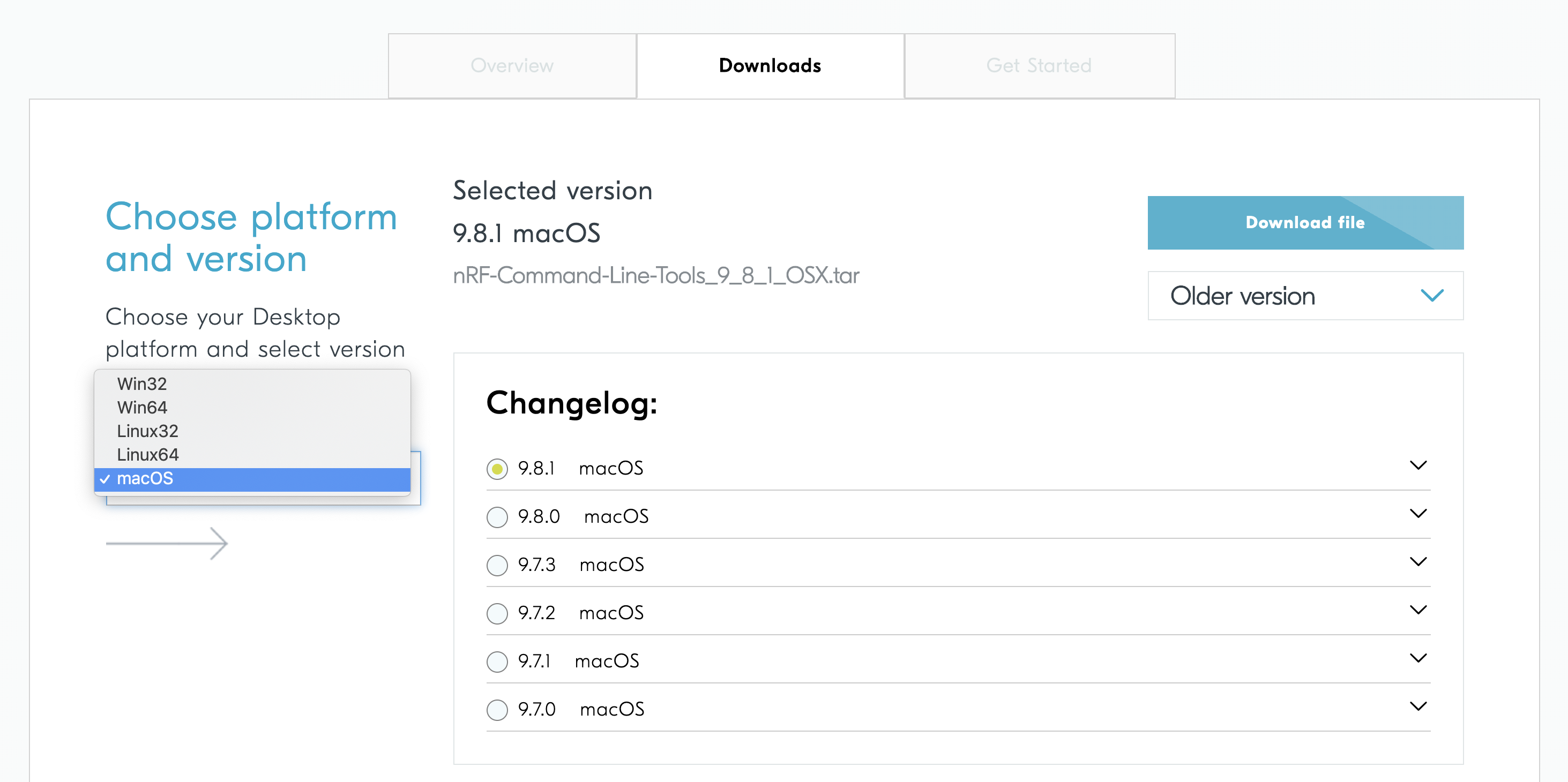 As we mentioned earlier, we’ll be using command line for almost everything in this post. For compiling the application, we’ll be using ARM GCC and GNU Make. For flashing the application to the board, we’ll be using the Nordic Command Line Tools (specifically, the nrfjprog command).