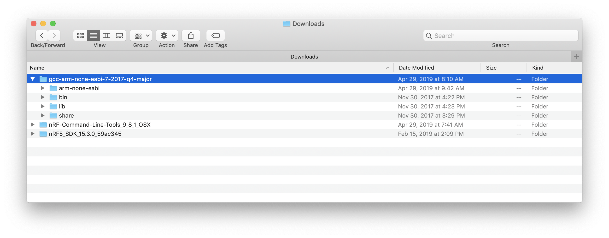 - GNU Arm Embedded Toolchain (we’ll be using version 7-2017-q4-major which is recommended by Nordic per this article).
